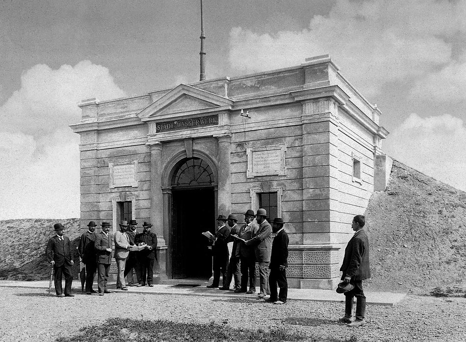 Kraków- Zakład Wodociągowy w Bielanach (1901 r.) czerpał wodę podziemną przez zespół studzien wierconych na lewym brzegu Wisły. Woda trafiała do studni zbiorczej na terenie zakładu, a pompy tłokowe napędzane maszynami parowymi, tłoczyły ją dalej do zbiornika początkowego na Górze św. Bronisławy, skąd grawitacyjnie spływały do miasta. (foto M. Kucharczyk)