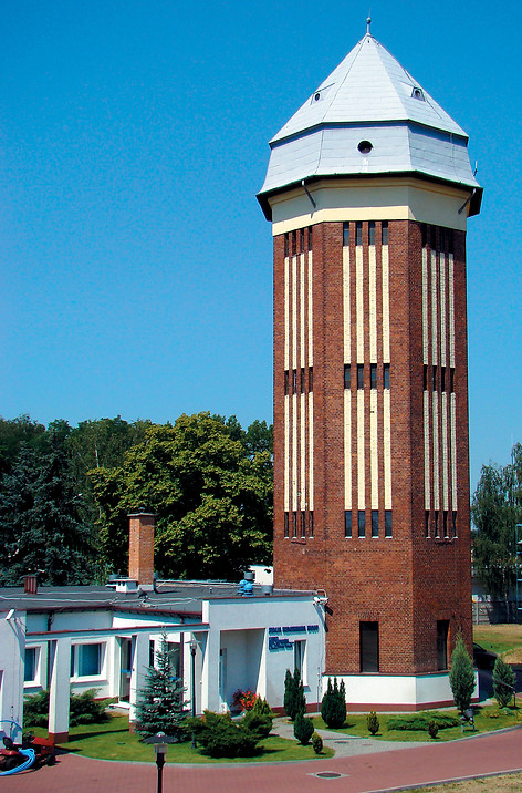 Nowy Tomyśl, woj. wielkopolskie - wieża ciśnień z 1906 r., wysokość 32 m, zbiornik 100 m³, stacja pomp tłokowych napędzanych silnikami na gaz miejski (foto P. Janik)