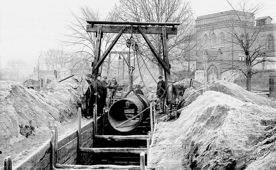 Zielona Góra. Budowa kanalizacji w rejonie Młyna Słodowego - 1928 r. (arch. Zielonogórskie Wodociągi i Kanalizacja)