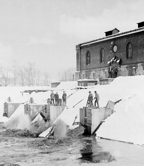 Wrocław. Oczyszczanie złoża filtra powolnego, lata międzywojenne (arch. MPWiK Wrocław)