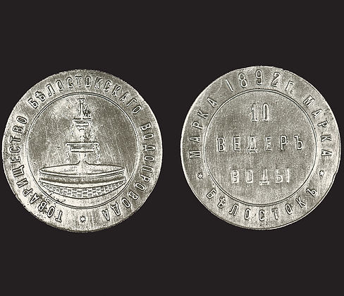 Prócz żetonów przeznaczonych do automatów, wodociągi emitowały również liczmany przeznaczone do dokonywania opłat za wodę sprzedawaną na wiadra w ulicznych punktach sprzedaży, którą to nosiwoda dostarczał następnie do mieszkań odbiorców. Żetony takie znamy z trzech miast byłego zaboru rosyjskiego: Białegostoku, Lublina i Płocka. Jako pierwsze rosyjskojęzyczne żetony wydało w 1892 r. Towarzystwo Wodociągów Białostockich. Znane są dwa nominały opiewające na 1 i 10 wiader wody. Można przypuszczać, że Towarzystwo przygotowało, jak to miało miejsce później w Lublinie i Płocku, specjalne punkty sprzedaży wody na wiadra. Adresowane były dla mieszkańców, którzy nie byli jej bezpośrednimi odbiorcami wprost z istniejącej sieci wodociągowej. Cenę wody ustalono na pół kopiejki za wiadro. Żetony były w użyciu do 1915 r. Na początku XX wieku w byłym Królestwie Kongresowym tylko nieliczne miasta jak Warszawa, Lublin, Łomża czy Płock miały wodociągi. Żetony wodociągowe natomiast znane są z Lublina i Płocka.